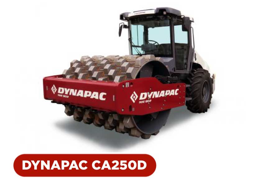 most types of soil. Typical applications are road building, airfields, dams, harbors and industrial sites. The CA250 is available with smooth